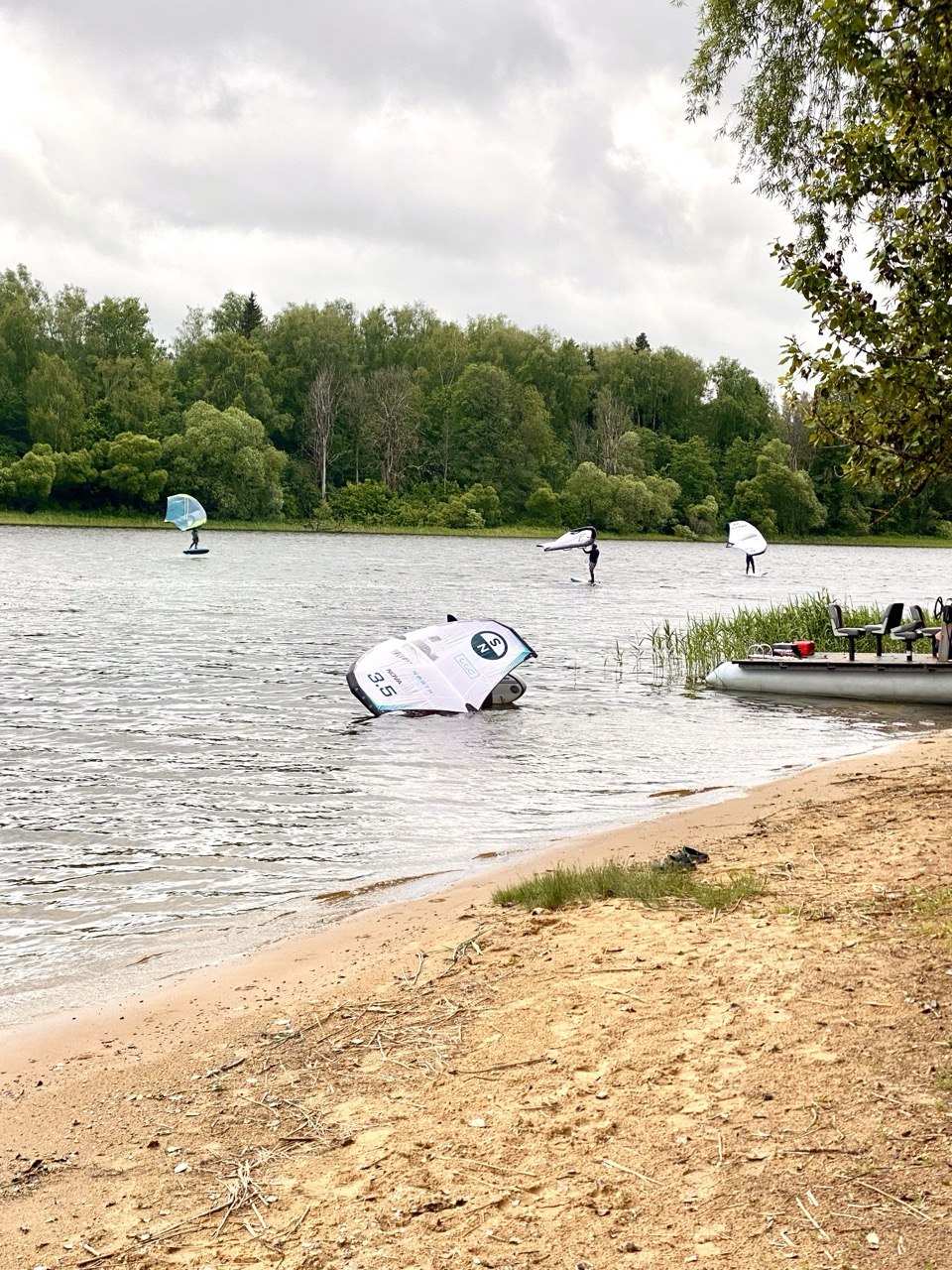 Тоже близко по Ярославке, акватория больше Строгино, ветер более ровный. Но здесь своя беда: интенсивное катерное движение. Пироговка — исторически место для катеров и яхт, и в выходные вода буквально перепахана волной от гидроциклов. Вингфойлеру это не подходит — фойл ловит на кильватерной волне случайные удары, и полёт превращается в постоянную коррекцию.